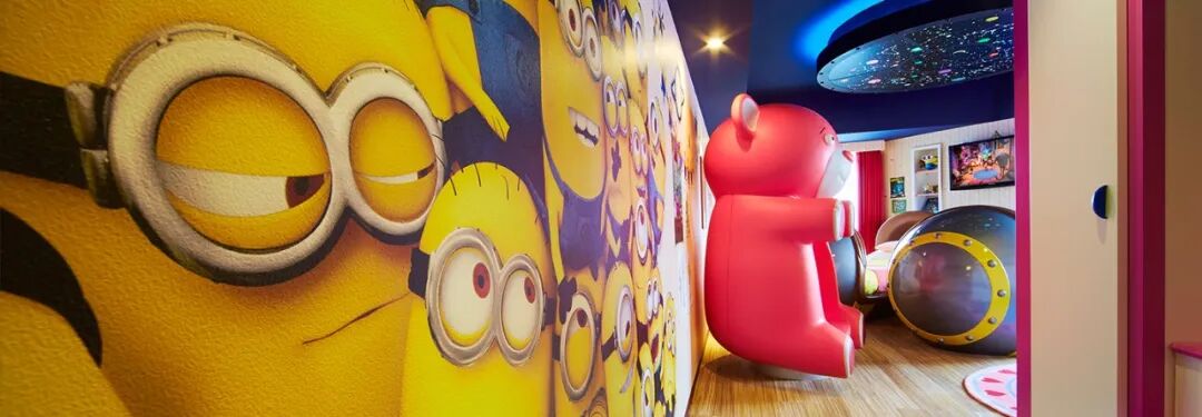 小黄人主题房是活泼可爱的风格,大人住回忆满满,孩子住开心快乐,是亲子旅游非常好的选择。