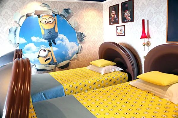 电影一经播出,它们就圈粉无数,在日本大阪的环球影城港口酒店(Hotel Universal Port),也有以小黄人为主题的房间!