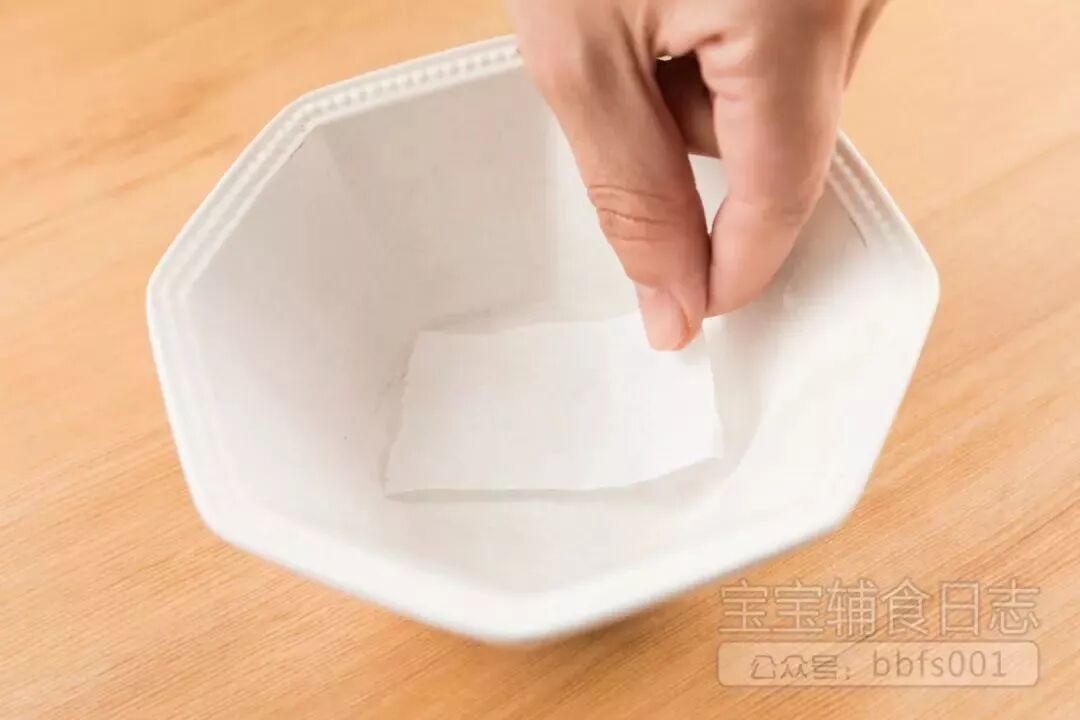 6.在容器底部放上一层硅油纸,倒入食材轻轻晃动到更平整,盖上保鲜膜,冷水上锅蒸15分钟左右;