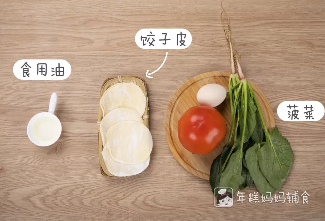 食材:菠菜2根、鸡蛋1个、饺子皮6张、西红柿1个