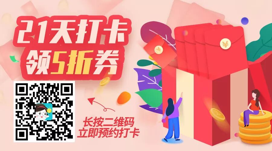 坚持21天学习打卡,就能领5折知识红包。学习嘛,总是有回报的!