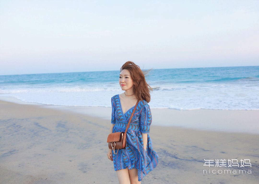 连衣裙和深蓝大海的呼应。