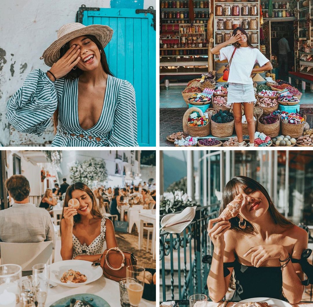 我最近发现了一位Instagram上的旅拍达人@belenhostalet,总是爱挡住一只眼睛拍照,和“全身痛”有异曲同工之妙。再加上闭眼微笑,愉快的心情已经蔓延到照片外了。