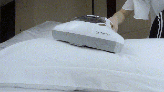 第一步:用50℃高温杀灭螨虫,以45度角均匀送出热气;